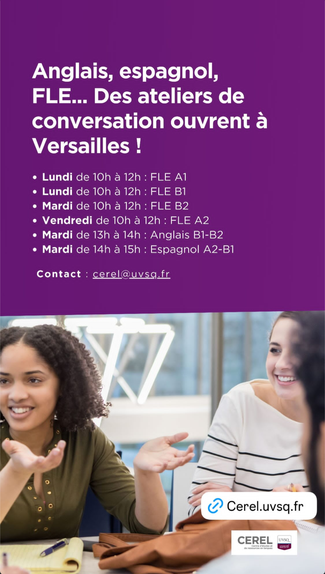 Si vous souhaitez vous y inscrire, merci de nous contacter par mail à cerel@uvsq.fr ou passez au CEREL le plus proche : nous vous renseignerons avec plaisir !