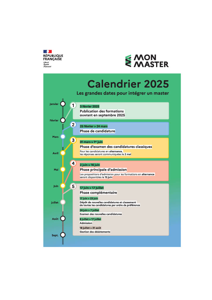 Consultez le calendrier de la plateforme MonMaster, la plateforme nationale unique pour les inscriptions en master 1.
