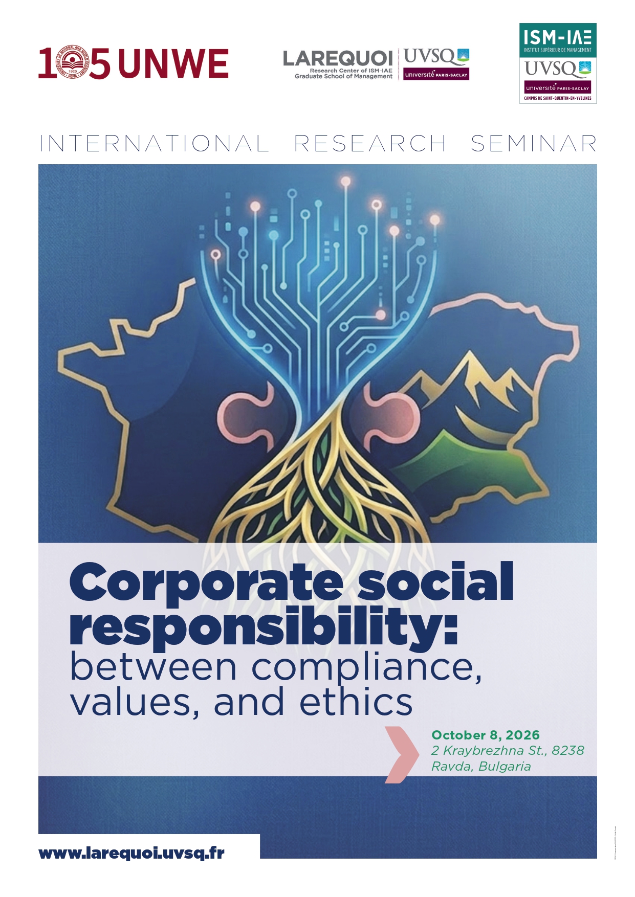 Cette journée d’études invite les chercheurs, en particulier français et bulgares, à explorer et analyser la RSE, dans ses pratiques, entre les obligations de conformité, les valeurs et l’éthique, en explorant la manière dont les organisations évoluent et agissent par rapport aux obligations légales, à leurs engagements normatifs et au besoin de légitimité sociale et politique.