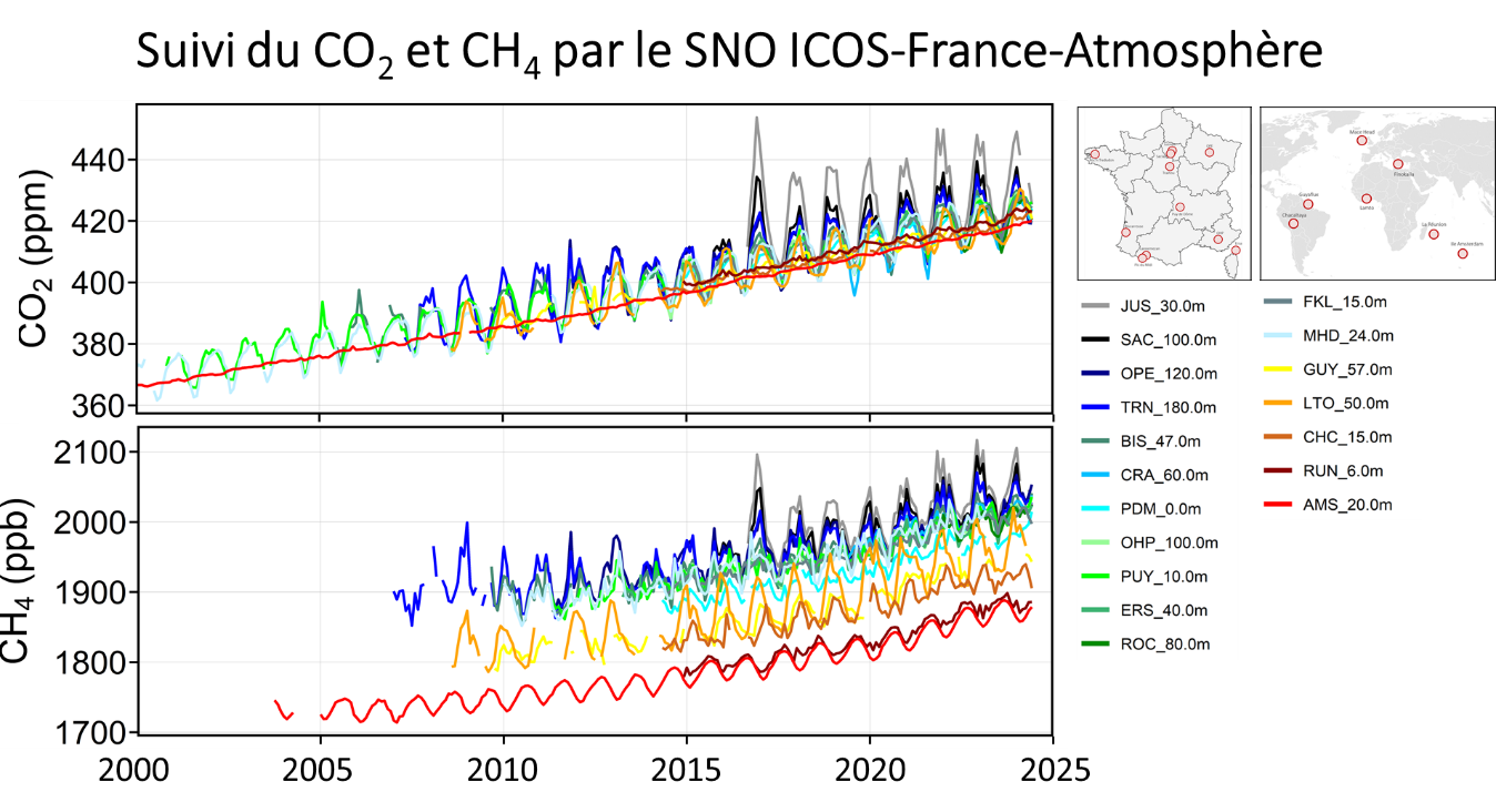 ICOS-France-Atmosphère : les gaz à effet de serre battent des records en 2024