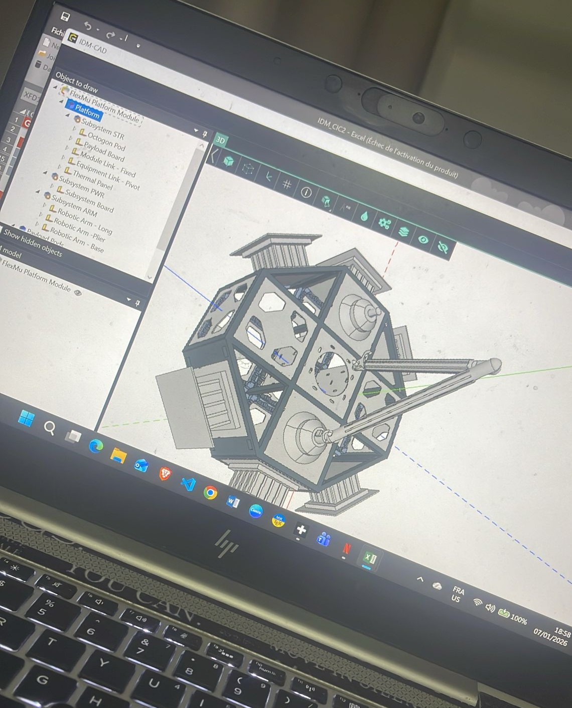 Ce projet avait pour objectif de développer en groupe de 9 étudiants un module de station spatiale internationale autonome en basse altitude (600 km). Ainsi, chaque équipe devait :