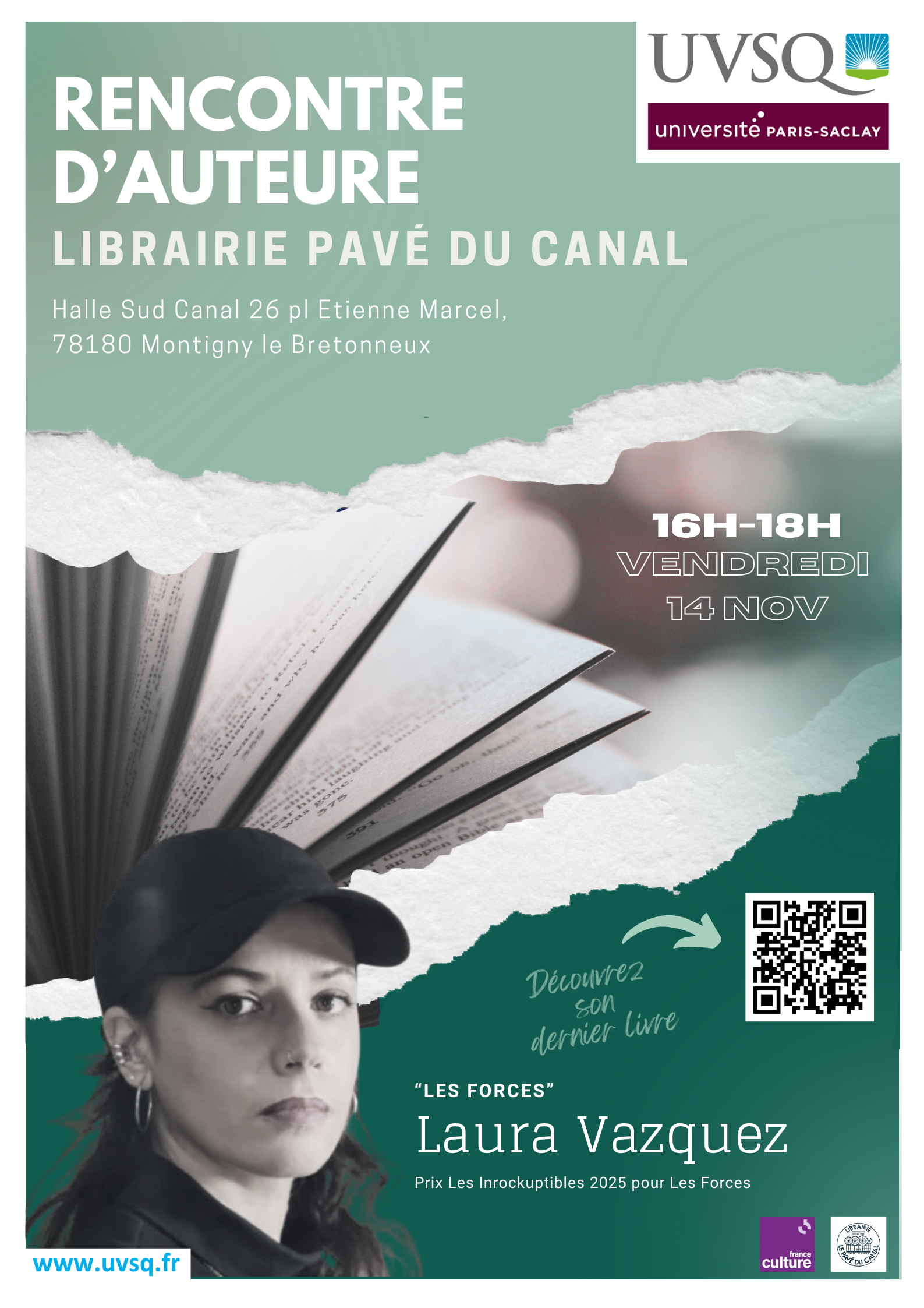 Dans le cadre du Prix Roman des Étudiants France Culture 2025, les étudiant·es de Master 1 RCL de l'IECI UVSQ Paris-Saclay ont rencontré Laura Vazquez, autrice du roman Les Forces, lors d'un échange organisé à la librairie Le Pavé du Canal à Montigny-le-Bretonneux.